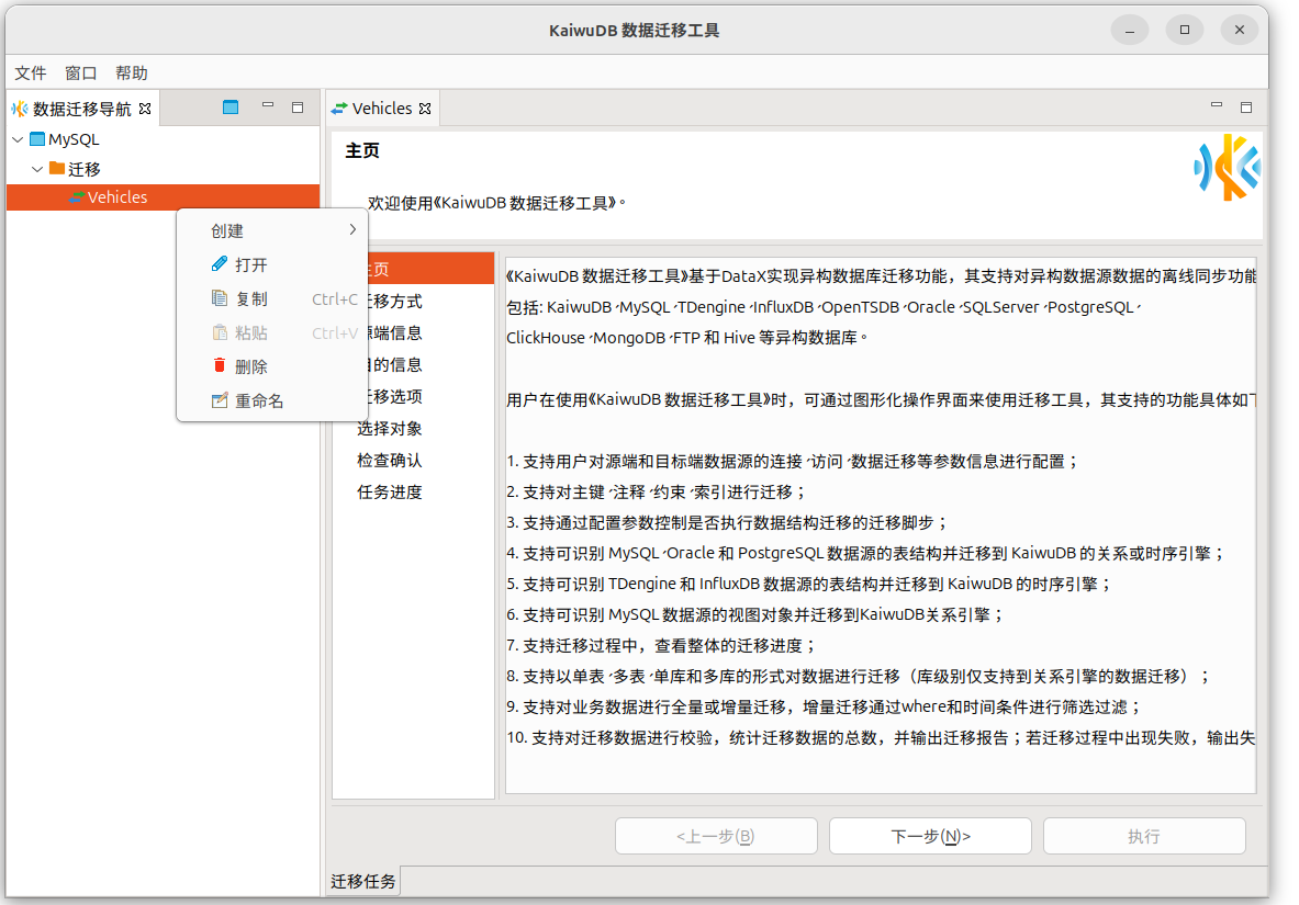 - MySQL、Oracle 或 PostgreSQL 迁移到 KaiwuDB 关系和时序引擎