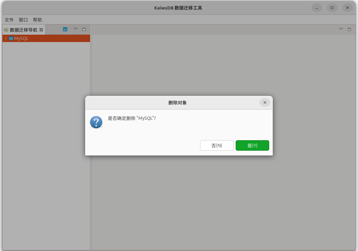 在数据迁移导航窗口中,右键单击待删除的工程,选择删除。