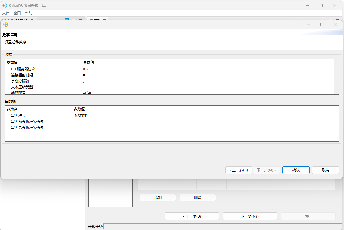 在迁移策略页面,根据需要设置编码配置、NULL 字符串等信息,然后单击确认。
