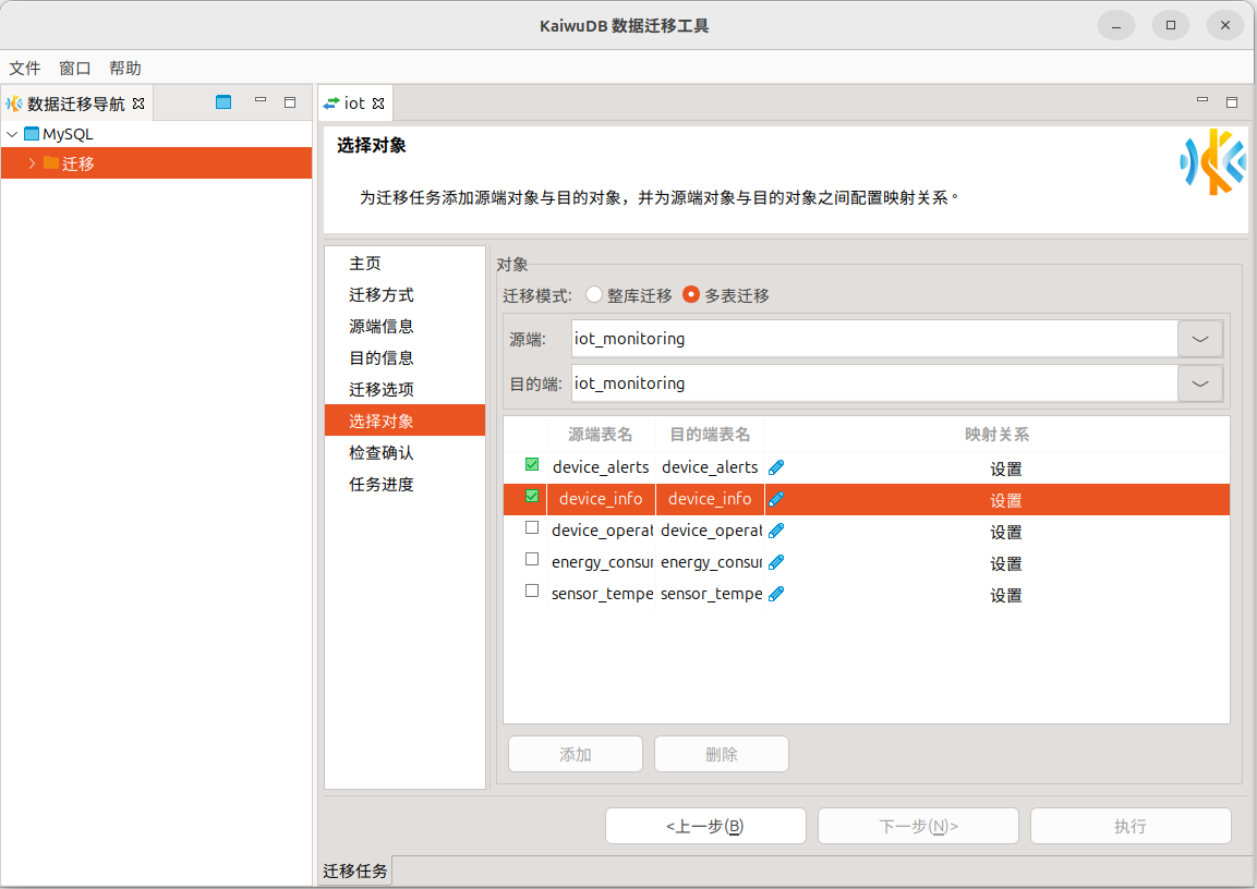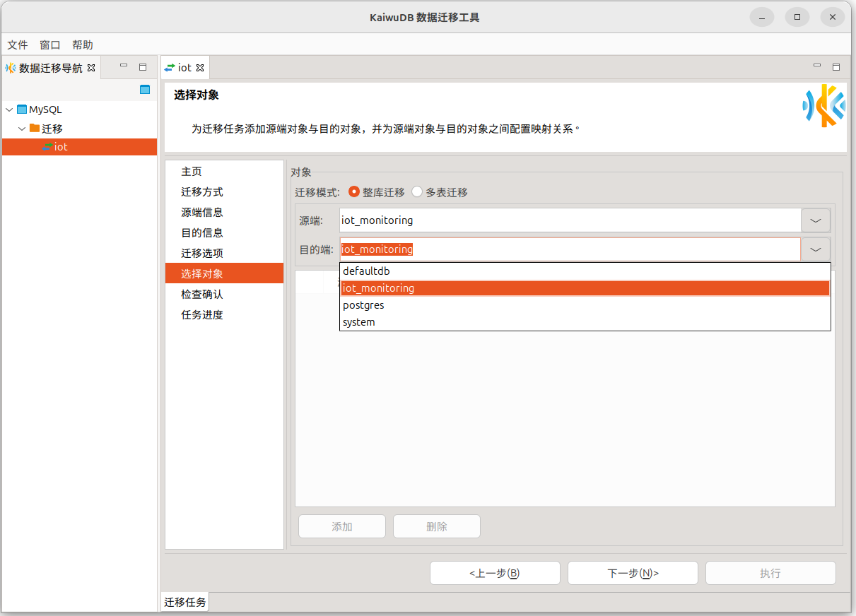 - 选择迁移对象(整库或多表)