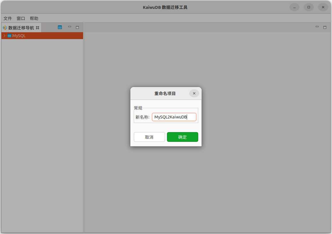 在数据迁移导航窗口中,右键单击待重命名的工程,选择重命名。