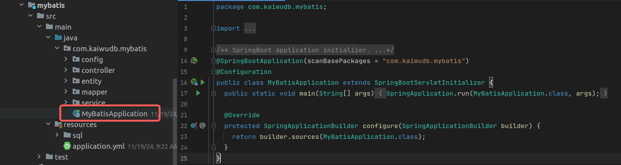 @SpringBootApplication(scanBasePackages = "com.kaiwudb.mybatis")