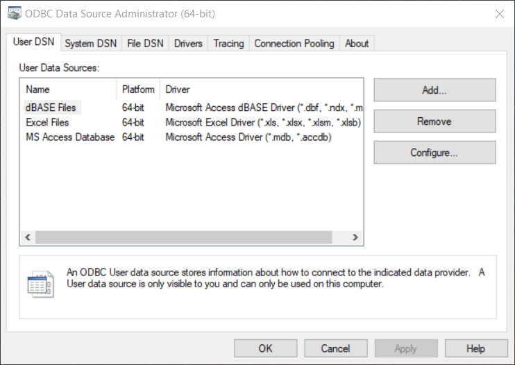 Double-click ODBC Data Sources (64-bit) to launch the ODBC Data Source Administrator.