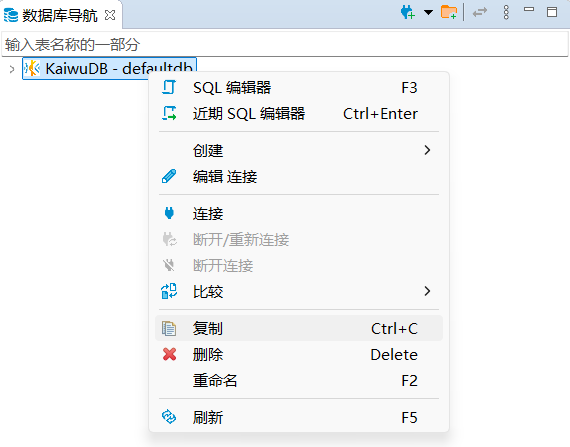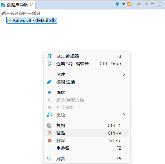 KaiwuDB 开发者中心支持通过复制粘贴已有连接的方式快速创建数据库连接。