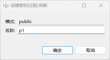在创建新的过程/函数对话框,填写存储过程名称,然后单击确定。