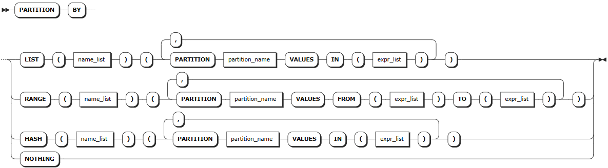 partition_by_clause | 可选项,允许用户在行级别定义表分区,支持按列表、范围和哈希值定义表分区。更多信息,参见分区。 |