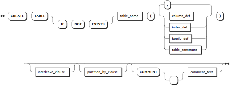 配置可选参数时,必须严格按照 [<column_def> | <index_def> | <family_def> | <table_constraint>] [<interleave_clause>] [<partition_by_clause>] [COMMENT [=] <'comment_text'>] 的顺序,否则系统将会报错。