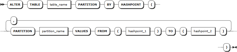 -- 为订单表创建按指定哈希值的分区 ALTER TABLE orders PARTITION BY HASHPOINT ( PARTITION p_region_1 VALUES IN [1, 3, 5, 7], PARTITION p_region_2 VALUES IN [2, 4, 6, 8], PARTITION p_region_3 VALUES IN [9, 10] );按指定哈希值范围分区