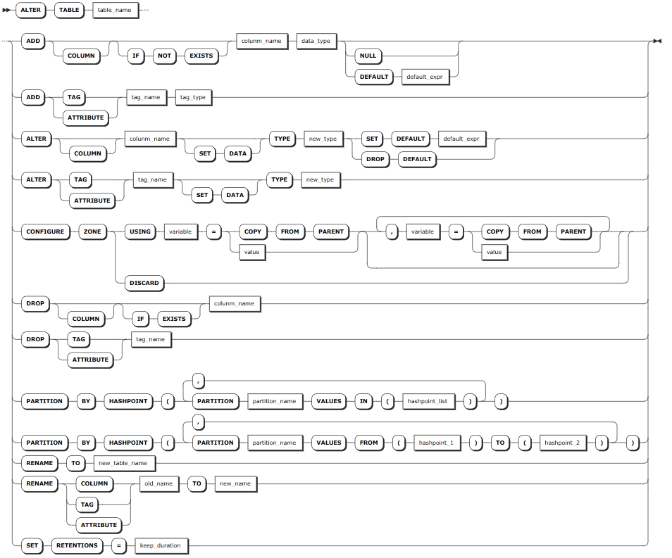 ALTER TABLE ts_table ADD TAG color VARCHAR(30);