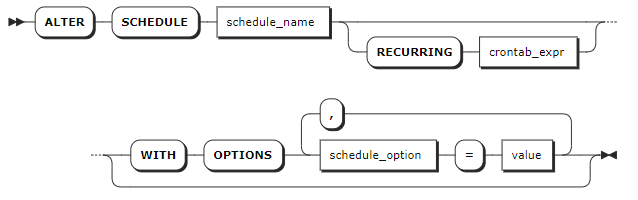 ALTER SCHEDULE 语句用于修改数据库中已存在的定时任务。修改将在下一个调度时间生效,不影响正在执行的任务和定时任务的状态。