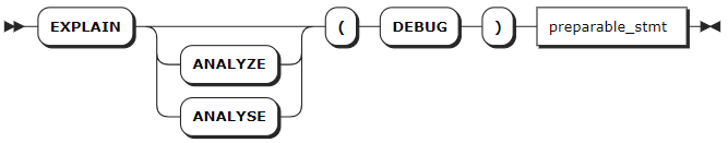 preparable_stmt | 需要进行 EXPLAIN 操作的语句。基本上,所有语句都可以和 EXPLAIN ANALYSE 组合使用,例如 CREATE、INSERT、UPDATE、DELETE 等。 |