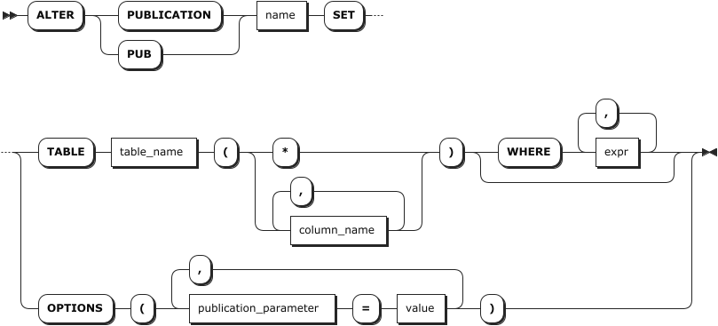 和 ALTER PUBLICATION SET OPTIONS