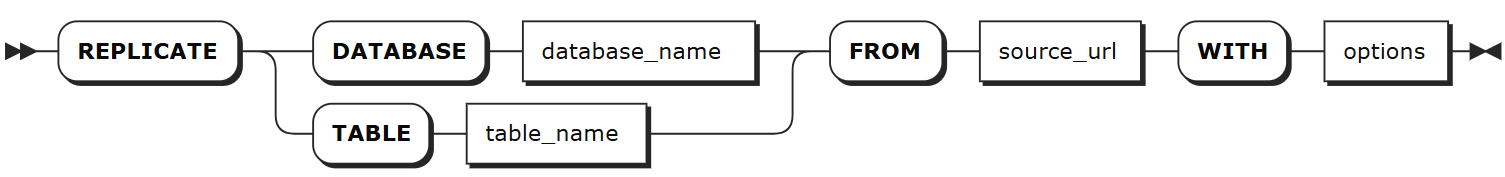 REPLICATE FROM 语句用于在集群间启动数据复制任务,支持表级别和库级别的数据复制。